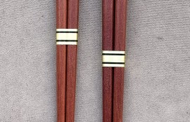 木製ひのきで作ってる「しゃもじ・びわしゃもじ・鳥居・もみじ・桜」は200円で販売しております、更にその箸置きに線彫りや色漆塗りもしております。