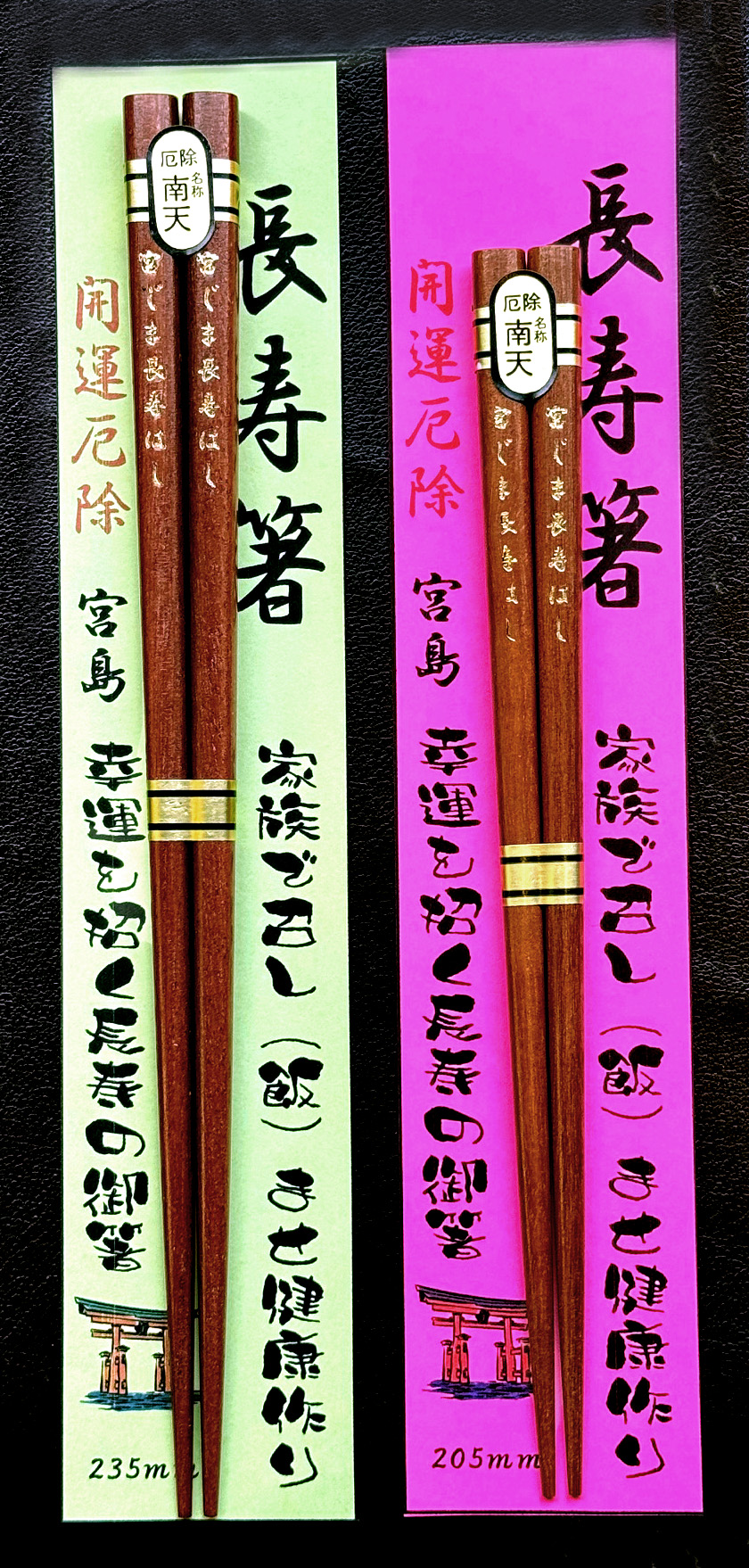 宮じまと長寿はしの文字を刻印し開運の文字入りでラッピングしております。